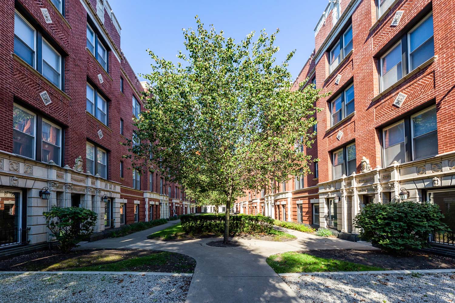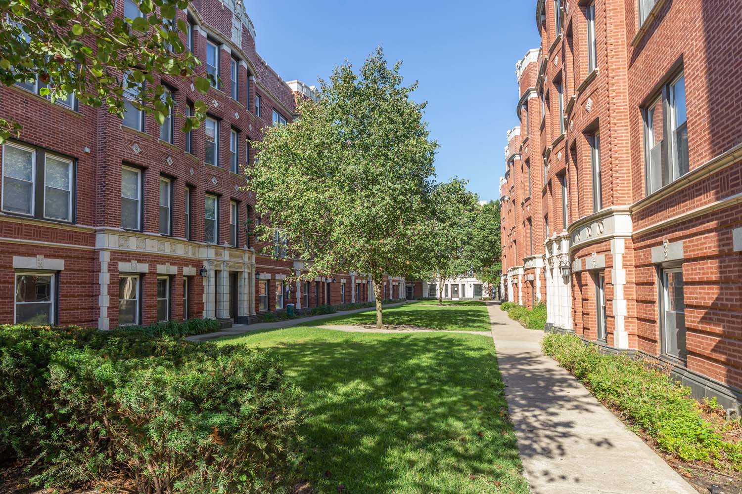 This three-story courtyard building is located in Hyde Park, a few blocks from the University of Chicago. A gut rehab was completed in 2011.