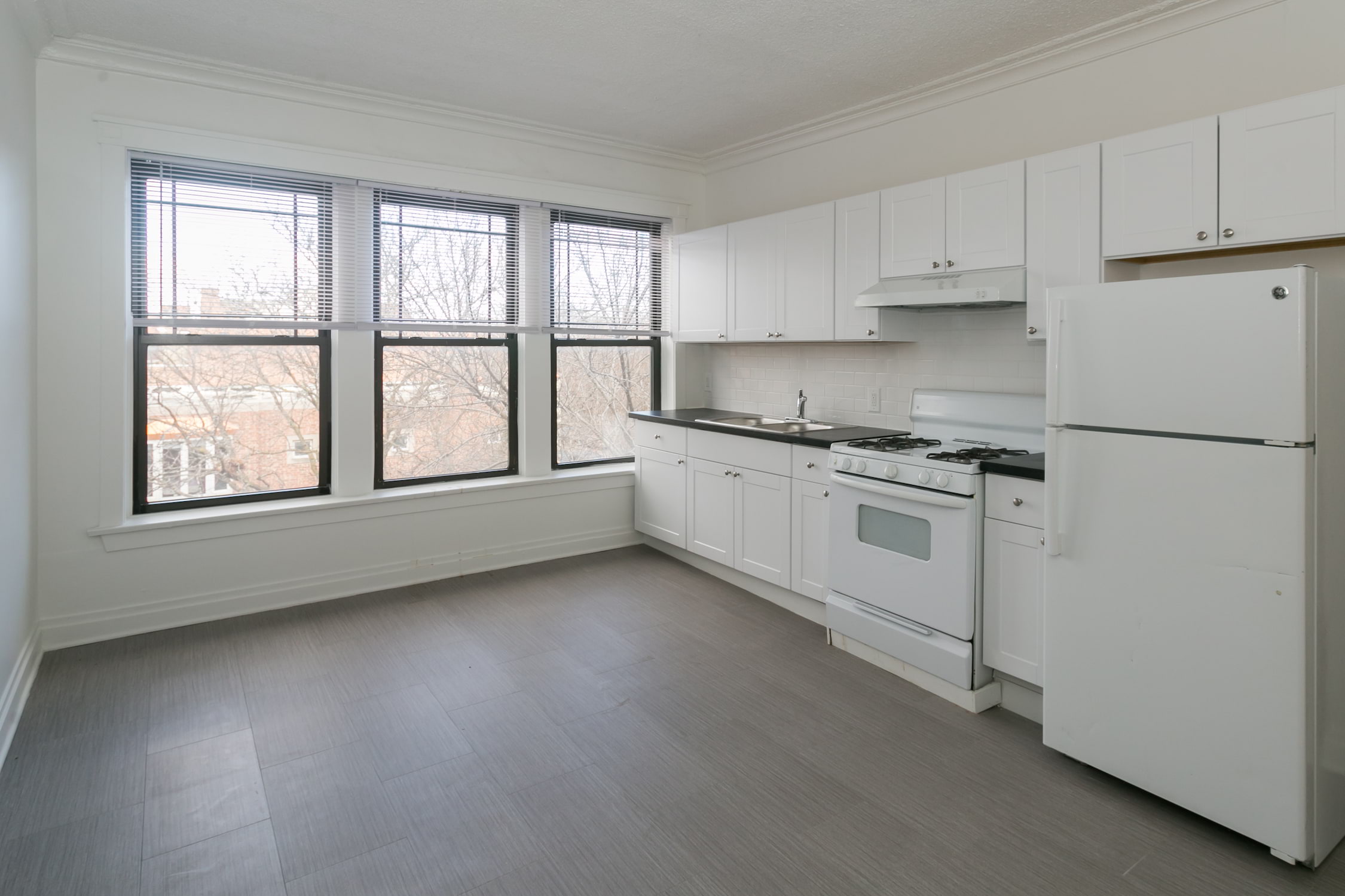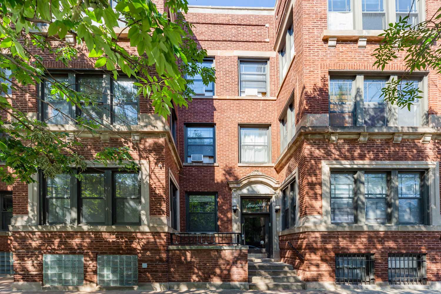 Resting on a quiet corner, this classic Hyde Park edifice stands as a testament to the areas rich architectural tradition. The red brick and limestone typical of the Arts & Crafts Movement provides a clean contrast to the recessed, arched Romanesque entryways. Windows line the buildings exterior, offering abundant morning light. A short walk takes you to the University of Chicago, while Lake Michigan and public transportation to the city are less than a mile away.