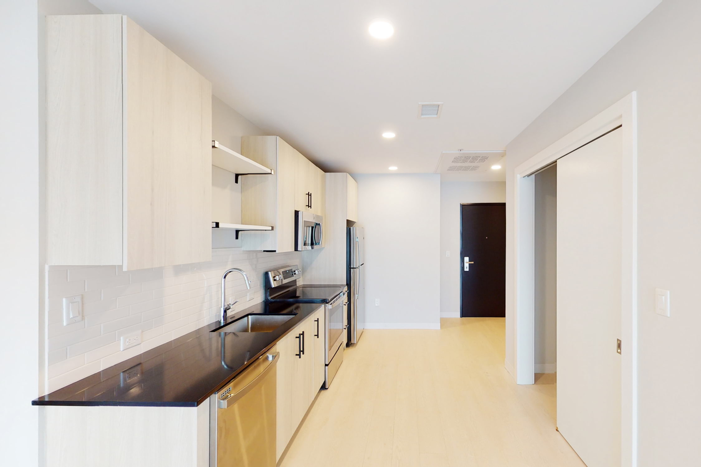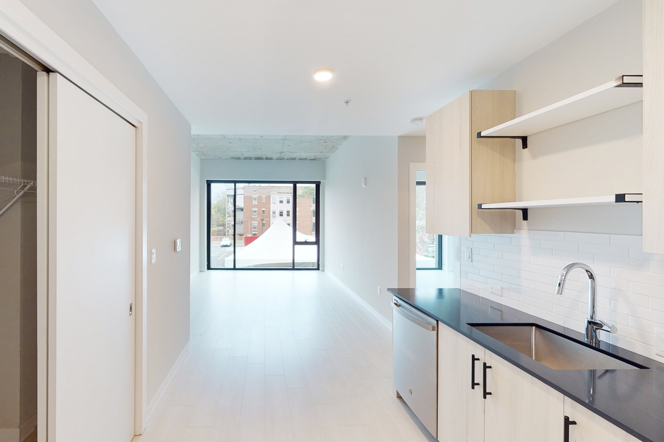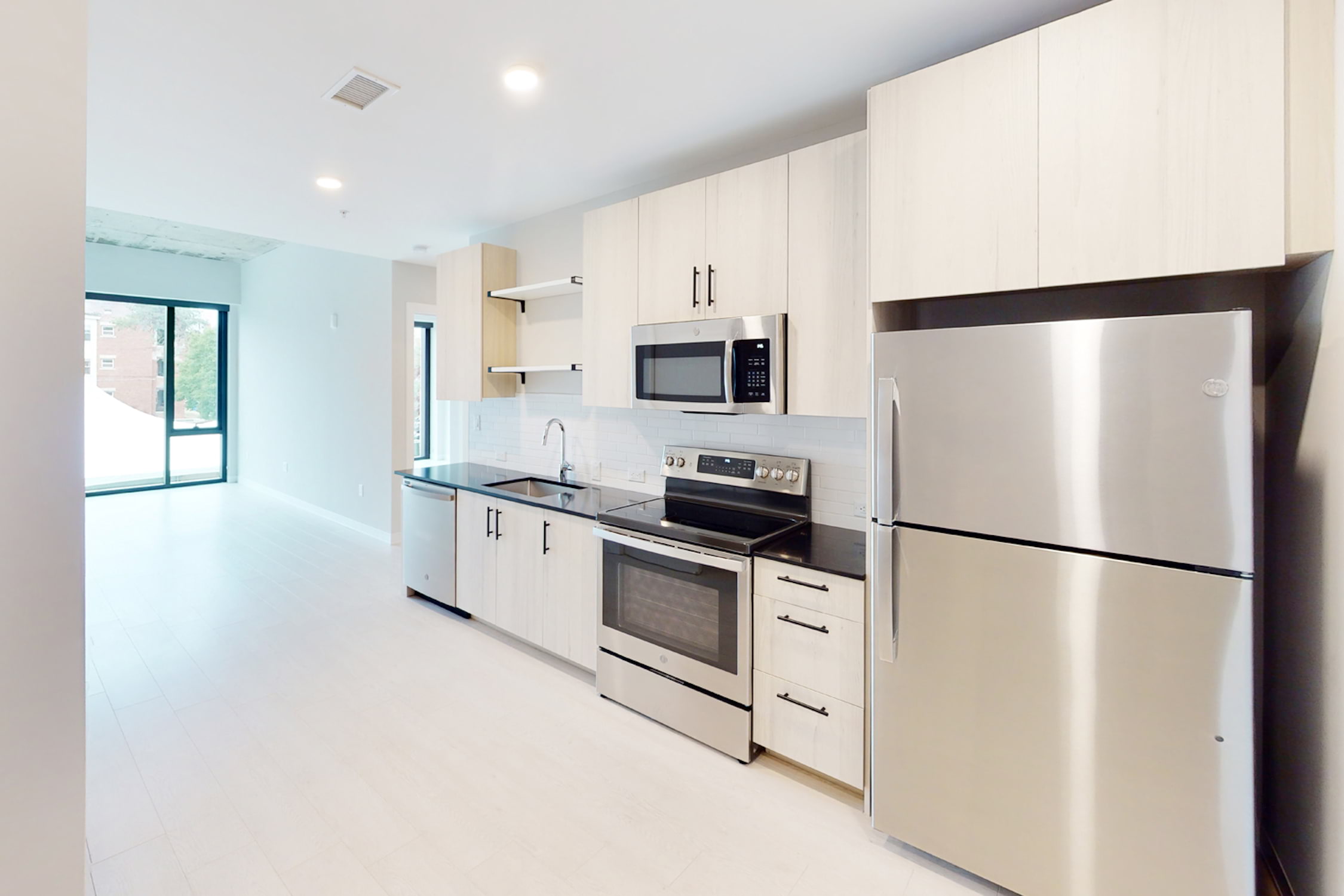 Mac Properties redeveloped Arc on Armour from a Mid-Century office building into a modern apartment community. Arc on Armour was renamed to honor its history as office space for the American Red Cross, to acknowledge the building’s location on Armour, and to recognize the distinguishing arches in the facade. Our architectural design team was careful to keep the best of the original elements, like the lobby’s terrazzo, the exposed concrete ceilings, and the masonry planters flanking the entrance. When possible, we improved some features, such as replacing brick-infilled arches with glass. New elements, such as black quartz counters, light wood flooring, and exposed concrete ceilings, were installed to provide a stylish, modern vibe. Washers/dryers, dishwashers, and USB ports are thoughtful apartment conveniences that make living easy Arc on Armour. We think the size of Arc on Armour is perfect. Sixty-two apartments are small enough that neighbors know each other and sense community. Yet, the community is large enough to have its fitness center and resident lounge. Arc on Armour sits on the tree-lined boulevard between Broadway and Main. Midtown is centrally located and within ten minutes of all the lively spots in Kansas City. Experience complimentary access to our must-have Neighborhood Amenities, such as lively Resident Events, Gillham Dog Park, and the IBM Lounge. Residents can also customize amenities with our Neighborhood Amenity Memberships to unlock access to the Carriage House Pool and Lounge and the fully equipped fitness center at The Gymnasium at the nearby Bellerive.