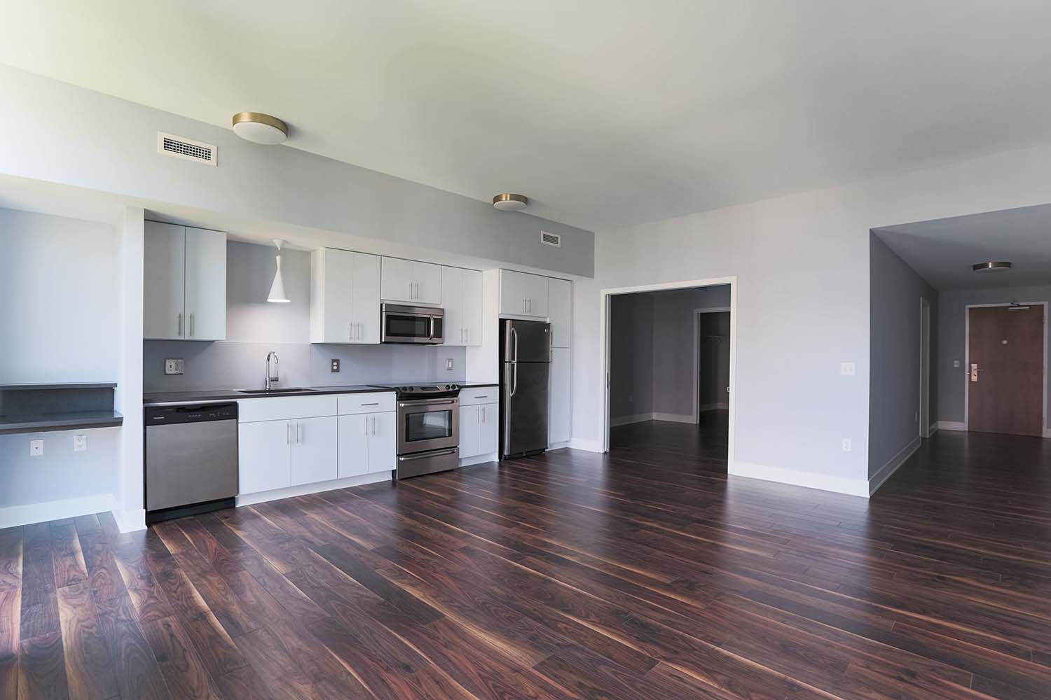 Located at 301 East Armour Boulevard, the International is Hyde Park’s first apartment community with a spacious and mid-century modern luxury style. What was once the old IBM building in 1960 has now been converted into a mixed-use space featuring 56 newly remodeled apartments and retail spaces on the lower levels. These apartments are incredibly spacious and feature waterfall island counters, high ceilings, plank flooring, a washer and dryer in each apartment, and floor-to-ceiling windows that allow for an amazing view of the historic Hyde Park neighborhood. Other properties around the city might have similar features, but few offer the same features with the amount of space relative to the price point. Experience complimentary access to our must-have Neighborhood Amenities, such as lively Resident Events, Gillham Dog Park, and the IBM Lounge. Residents can also customize amenities with our Neighborhood Amenity Memberships to unlock access to the Carriage House Pool and Lounge and the fully equipped fitness center at The Gymnasium at the nearby Bellerive.